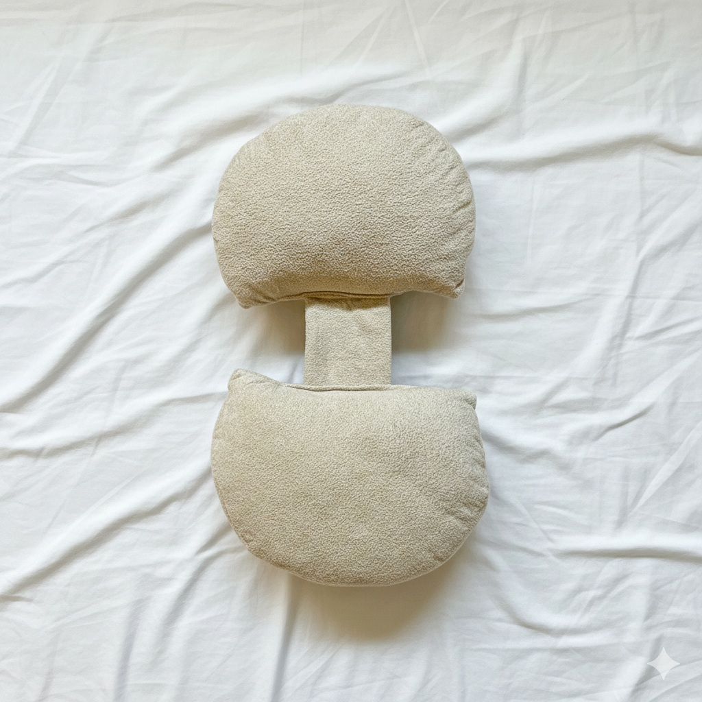 As your bump grows, restful sleep can turn into constant shifting, hip pressure, and back strain. This pregnancy pillow gently cradles your bump while keeping your spine aligned and your legs supported. Its dual-support design relieves the forward pull of your belly, helps prevent unsafe sleep positions, and reduces pressure on hips and knees so you can rest in a more balanced, comfortable position as your body changes.
